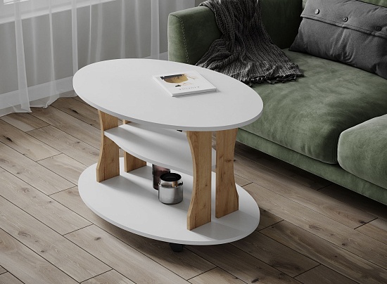 Журнальный стол Консул-1 белый/дуб крафт золотой