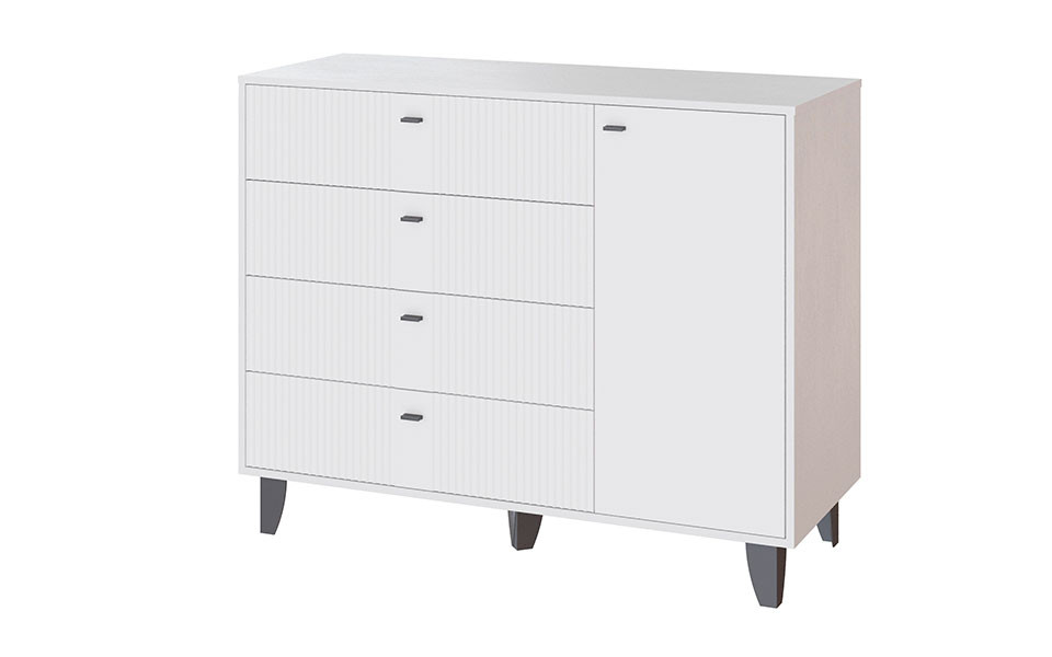 Комод Катрин-13 от фабрики ТЭКС станет отличным дополнением для вашего дома, дачи или квартиры. Изготовленный из качественного ЛДСП с МДФ фасадом в современном стиле. Этот комод не только привлекает взгляд, но и является функциональным элементом интерьера.
