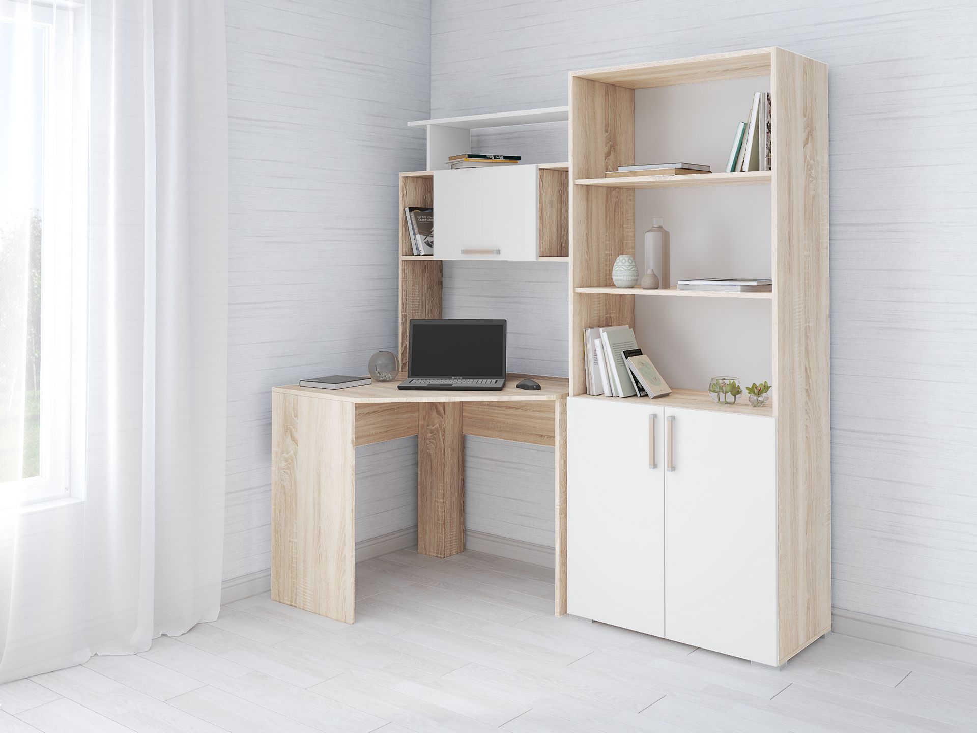 — Стол можно доукомплектовать пеналом (ВхШхГ 1850х350х420) и стеллажом (ВхШхГ 1850х800х420)
